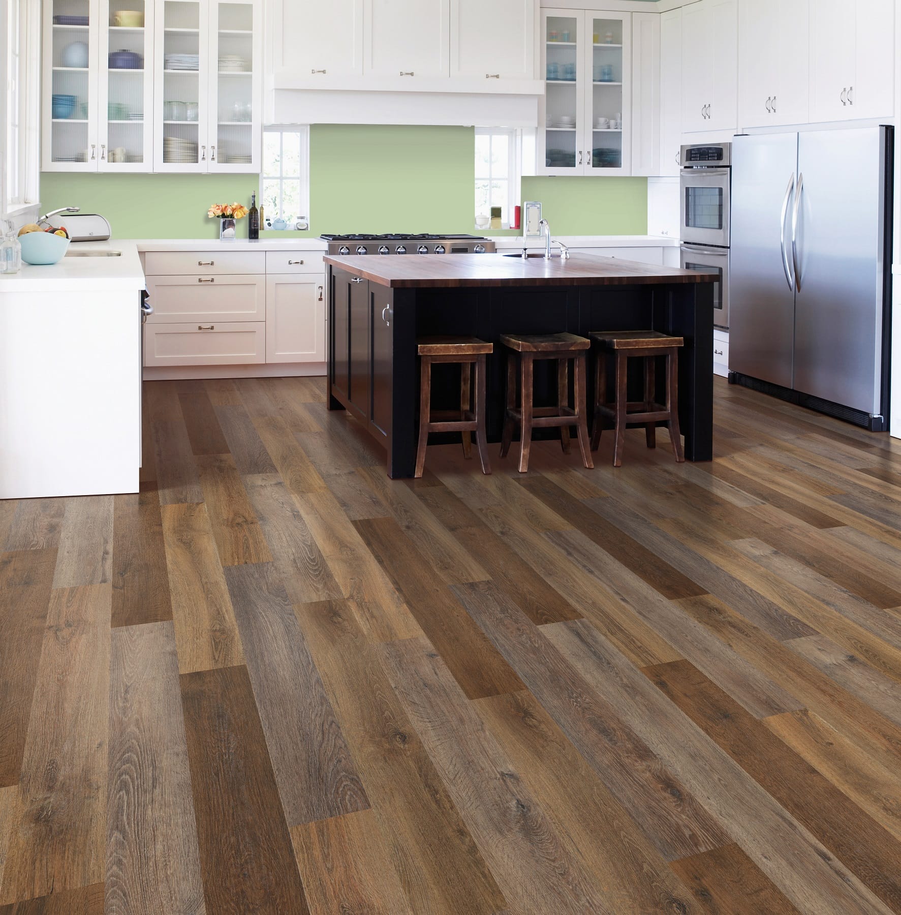 LVF provides realistic photographs of wood, stone, and tile taken with 3D photography with images inspired by nature. The images are clear and vibrant, and the floors have micro beveling and embossing to add depth, dimension, and textured appearances.