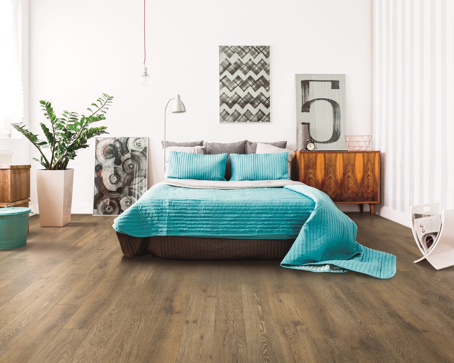 This is a layered product and, at the top is an ultra-strong, clear aluminum oxide coating that protects the floor from scratches, scuffs, stains, and sun fading. There is also the AC (Abrasion Criteria) Rating that most manufacturers use to determine each product’s strength in various uses. The higher the number, the stronger the product; most residential applications should go for AC3 or AC4 for moderately and heavily foot trafficked rooms.